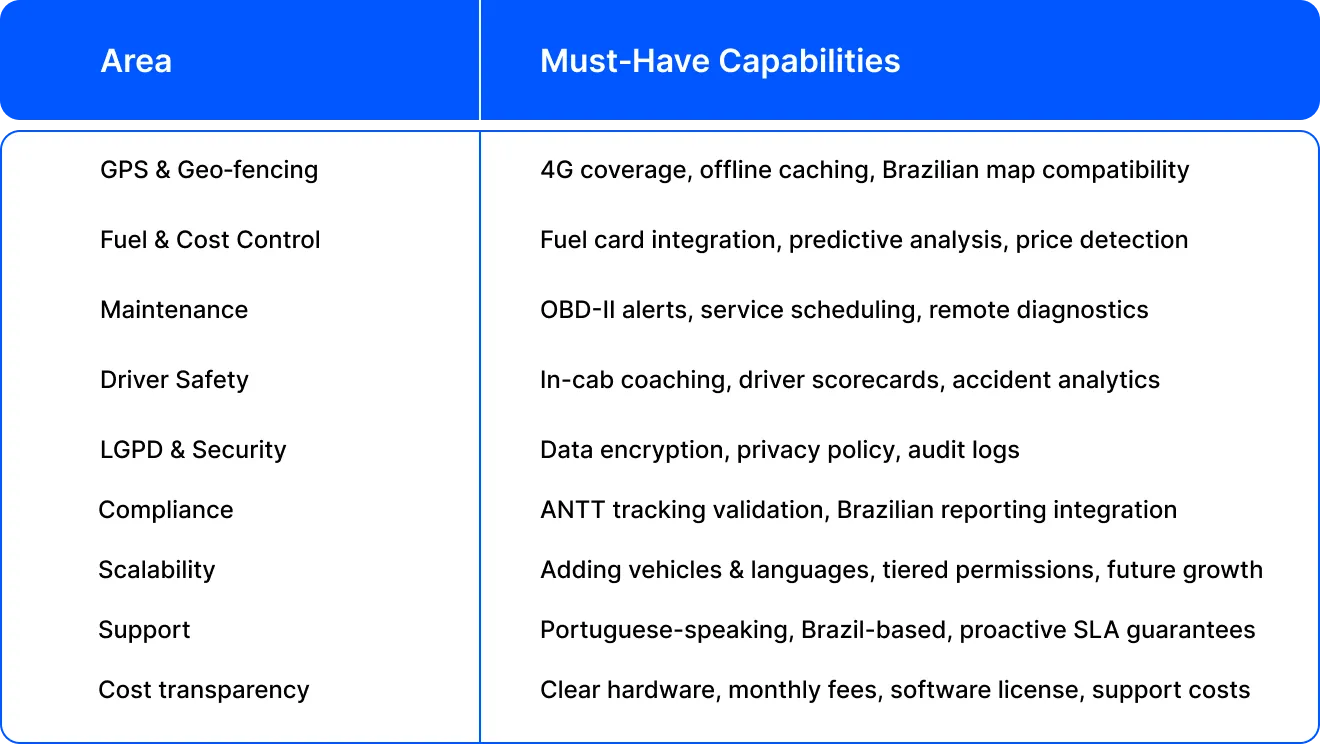 - Compliance demands: Do you haul hazardous goods or operate interstate, requiring ANTT-approved tracking systems?