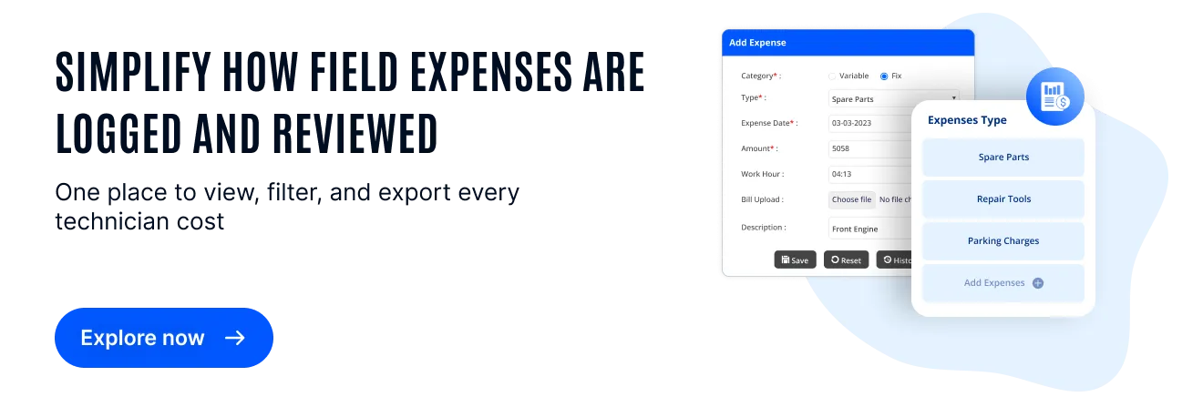Field technicians are constantly on the move. They visit multiple client sites, handle urgent service calls, and often make small but essential purchases on the spot. These might include spare parts, fuel, parking charges, or repair tools. If these expenses are not logged properly, they become invisible to the system.