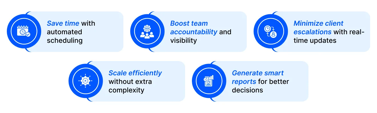 Everyone knows their role, timeline, and status updates. - Fewer client escalations