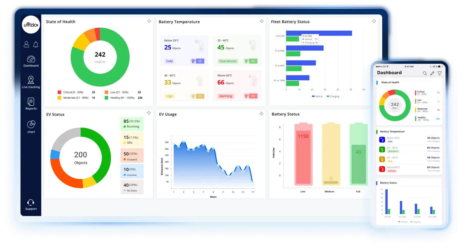 Your clients can access real-time battery health, state of charge, charging patterns, energy consumption, fault detection, temperature reports, and more – all from a single dashboard.
