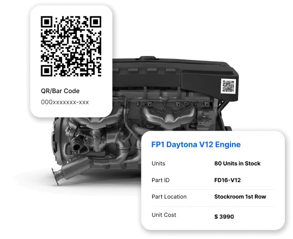 Allow your clients to evidently track and manage inventory items with our parts inventory management. Each part is assigned a unique barcode or QR code, eventually enabling real-time tracking and accurate data capture.