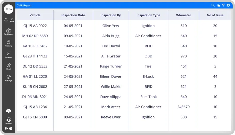 DVIR in Uffizio provides a streamlined, digital solution for managing vehicle inspections and maintenance, helping fleet managers ensure the safety and reliability of their vehicles while reducing paperwork and administrative tasks. Moreover, when it comes to conducting inspections, drivers can use the Uffizio driver app to perform pre-trip and post-trip inspections of their vehicles. The app offers a comprehensive checklist of items that need to be inspected, such as brakes, tires, lights, and fluid levels. This efficient process not only enhances the overall inspection workflow but also seamlessly facilitates the transition from inspection to maintenance activities.