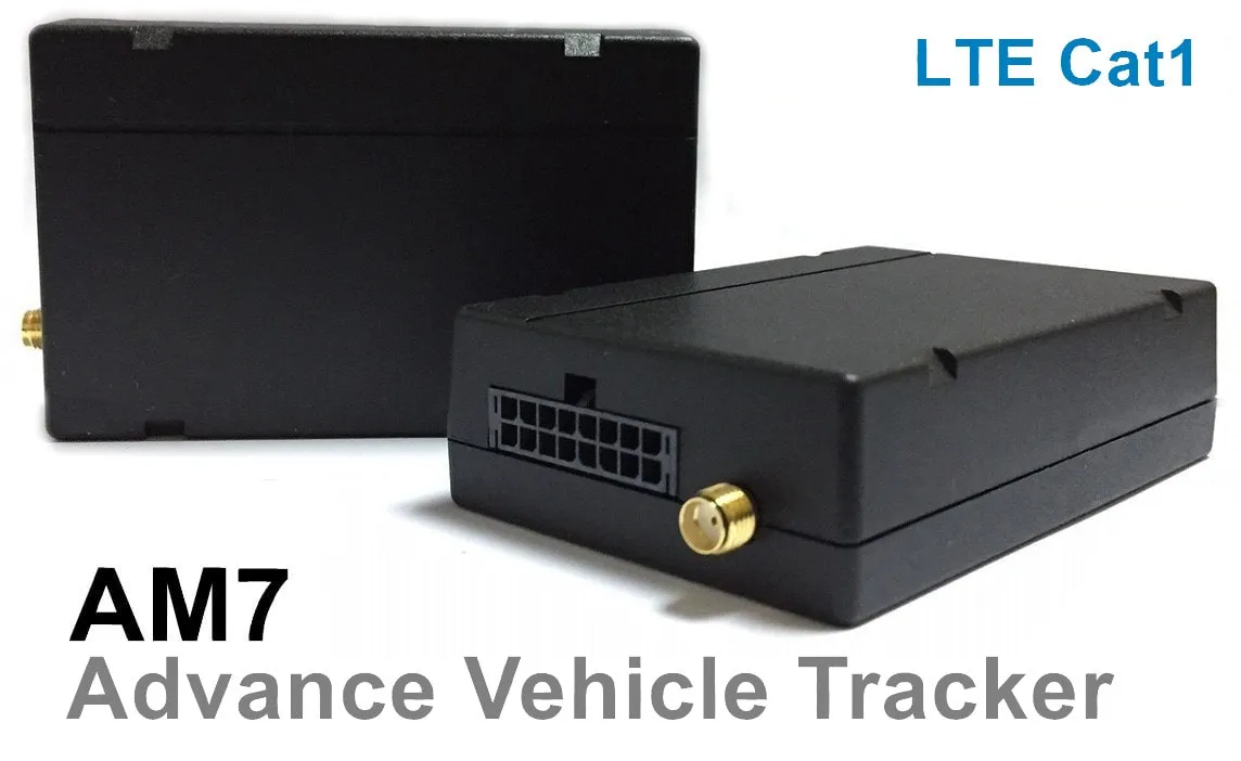 AM7 Series is , LTE CAT M1, NB IoT terminal for ADVANCED applications and includes two models designed for light duty vehicle applications. also provide to GNSS GPS, GLONASS, BeiDou/Compass, Galileo, QZSS optional, The series features multiple interfaces including two RS232 or one RS485 serial port, Multi-purpose I/O ports are configurable to control external devices, 1-wire interface for temperature monitoring, a two-way audio interface, etc. and to support a wide variety of external Alematics accessories.