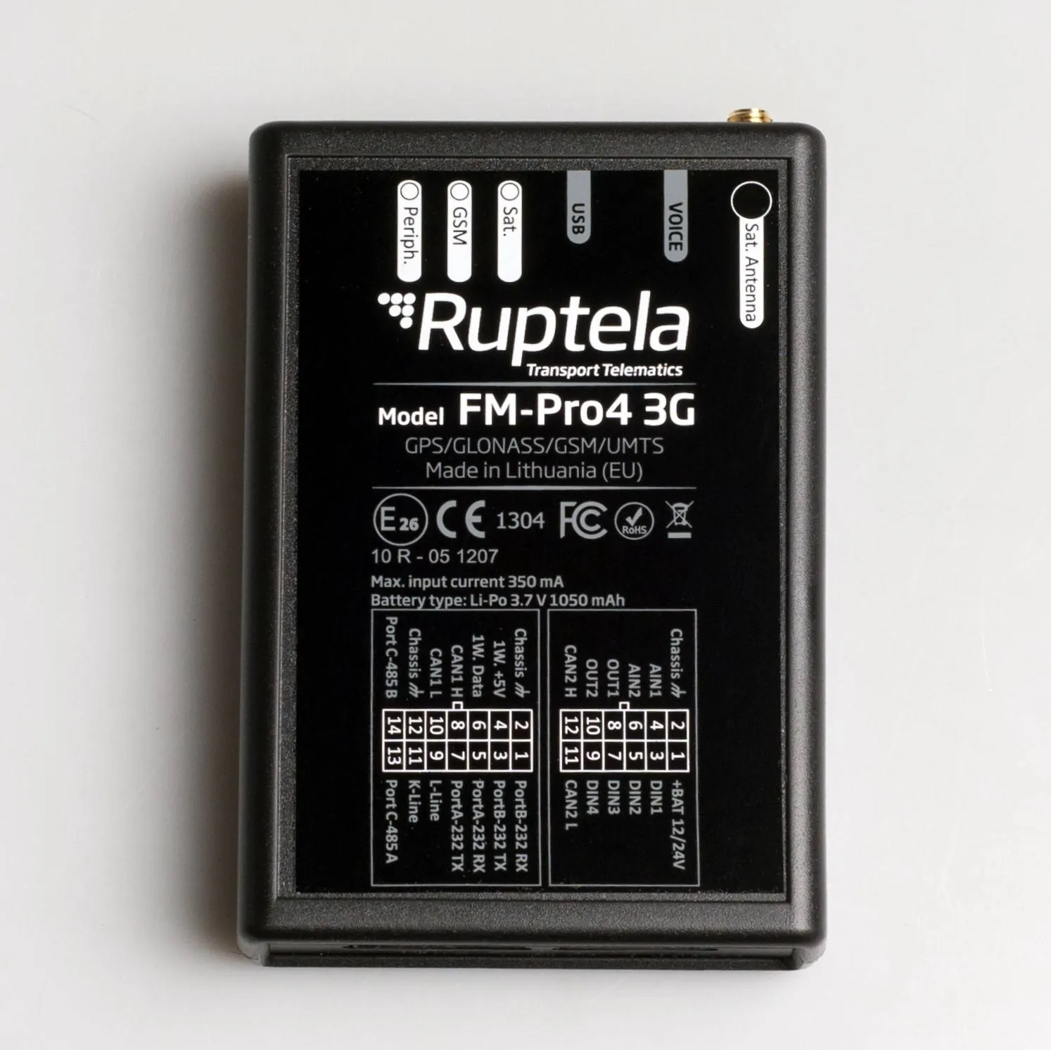 FM-Pro4 is a professional tracking device for trucks, buses, construction, agriculture, and other heavy-duty machinery. The FM-Pro4 is best used for advanced tracking solutions. Fuel level and consumption monitoring, driver behavior monitoring, CANbus data reading, and similar.