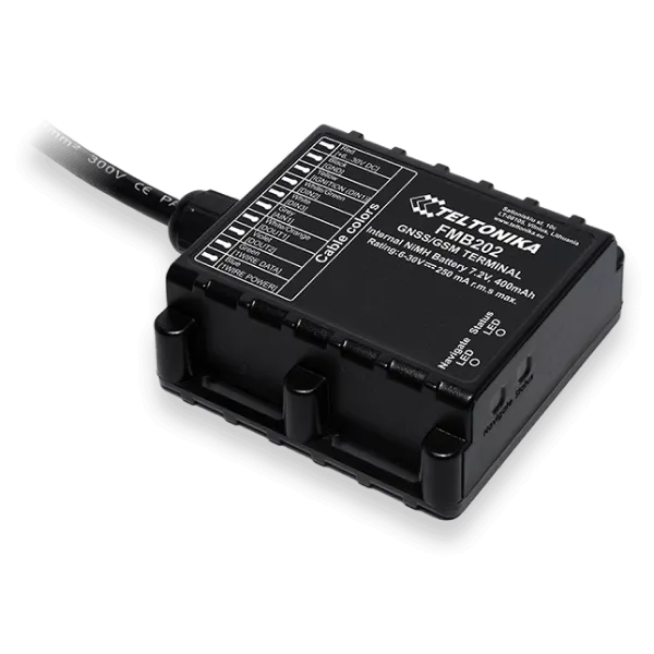Teltonika FMB202 is a SPECIAL waterproof (IP67) tracker with Blue-tooth connectivity, internal high gain GNSS and GSM antennas, and an integrated high capacity backup battery. The device is designed to work longer without a power supply. FMB202 with NiMH battery can work for up to 2 days in power-saving mode. FMB202 is perfectly suitable for agriculture, delivery, refrigerated transport, trailer tracking, security & emergency services, and even more. 6-30V power supply makes FMB202 suitable for motorbikes and water transport.