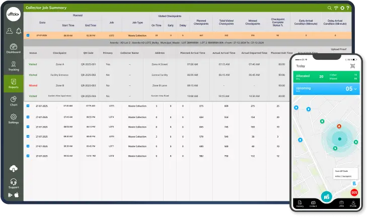 Daily job lists are sent directly to the collector’s mobile app, complete with route navigation and priority checkpoints.