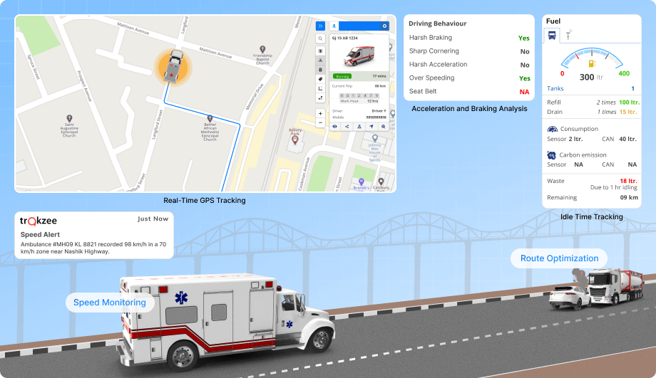A metropolitan area’s emergency services department, including fire and EMS (Emergency Medical Services), operates a fleet of emergency vehicles. They are responsible for rapid response to fires, medical emergencies, and various rescue missions. The department faces several challenges related to driver safety, response times, and fleet maintenance. To address these challenges, they implemented a driver behavior monitoring system.