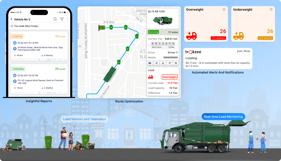 A waste management company operates a fleet of waste collection vehicles and faces challenges related to load management and operational efficiency.