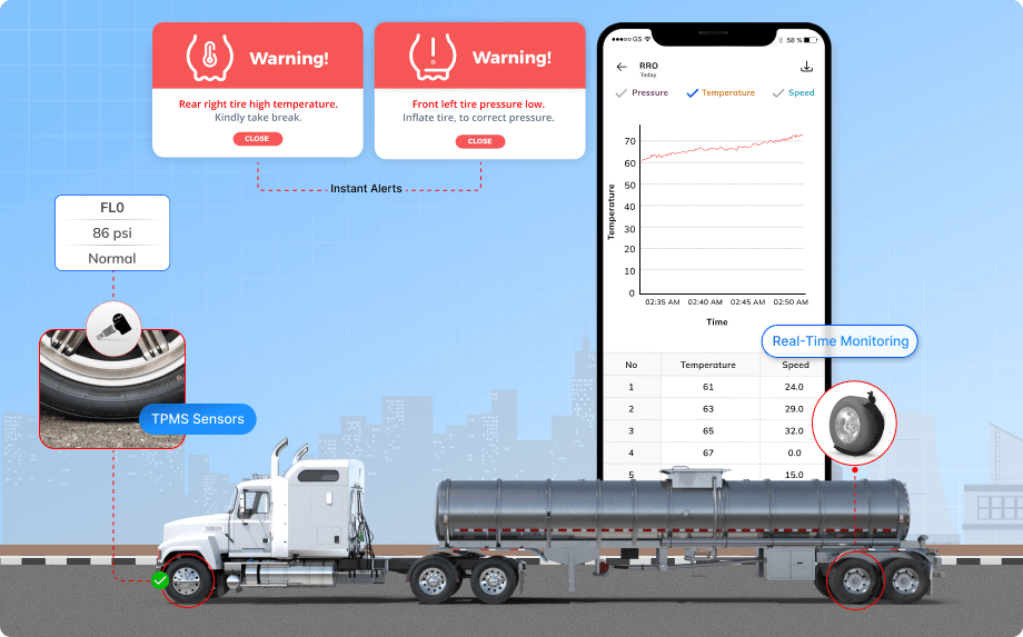 • Ensure Safety: Ensure safe transportation of hazardous chemicals by monitoring tire pressure in real time.