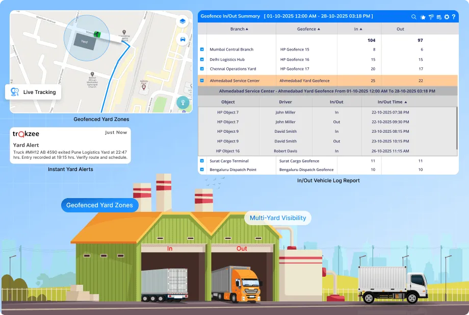 For logistics hubs, warehouses, factories, and transport yards, knowing exactly when vehicles enter or exit the premises is critical. Relying on manual logs or paper registers often leads to confusion, delayed dispatches, and security lapses. Trakzee’s yard in/out vehicle log system automates this entire process using geofencing, live tracking, and intelligent alerts, ensuring that every vehicle movement is recorded accurately and in real time.