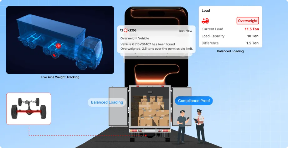 • Instant Alerts → If an axle crosses the permitted limit, both driver and manager get notified immediately.