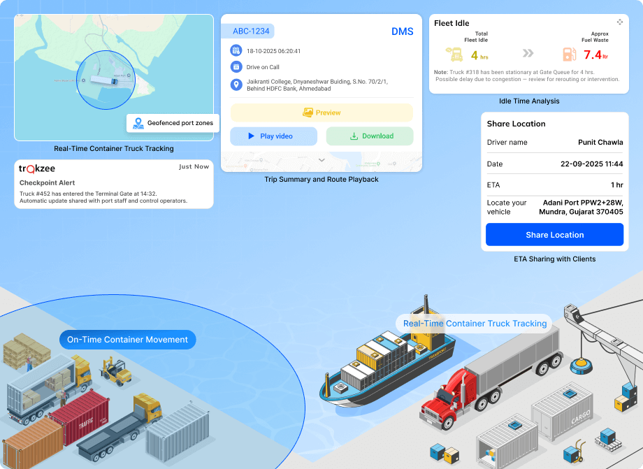 Ports operate like living ecosystems – thousands of container trucks move in and out daily, carrying shipments worth millions. Yet, without real-time visibility, port authorities and logistics operators struggle to manage vehicle flow, prevent congestion, and ensure timely cargo movement. Trakzee’s Container Truck Tracking solution brings transparency and coordination to port logistics by providing live monitoring, trip analytics, and intelligent route management for every truck inside and outside port premises.