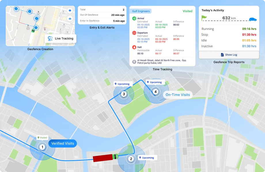 Managing visits to customer locations is a big part of fleet operations. Without the right tools, it becomes difficult to know if vehicles are reaching customers on time and how long they stay there. Geofencing helps automate this process by creating digital boundaries around customer sites, giving managers better visibility and control.