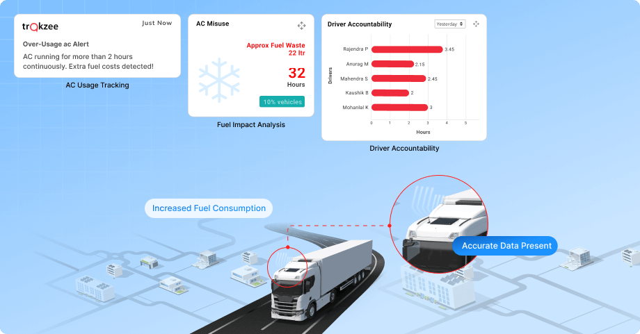 Air conditioning keeps drivers comfortable, but it also increases fuel consumption. When AC use goes unchecked, fleets face higher costs without realizing the impact. Monitoring AC usage helps fleets find the right balance between comfort and cost savings. Trakzee’s AC Usage Monitoring feature makes it easy to track hidden expenses and reduce unnecessary fuel waste.