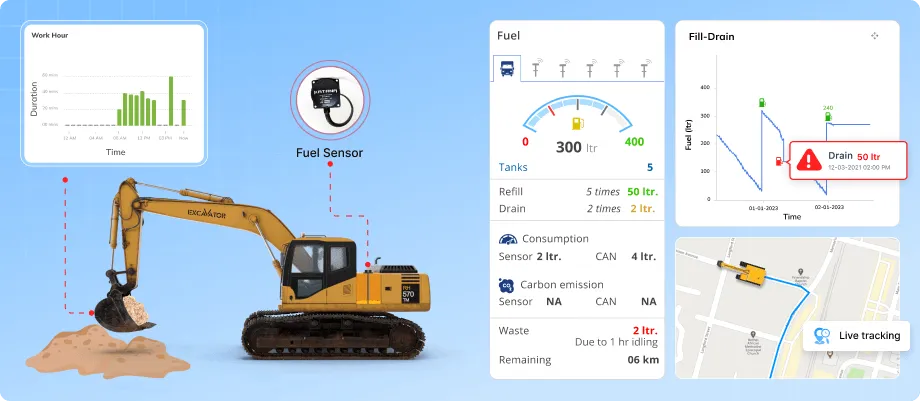 • Fuel misuse and loss: Fuel is filled manually on-site, often without proper records. There’s no way to know how much fuel was added, when, or if it was used for work. This leads to frequent fuel loss and overspending.