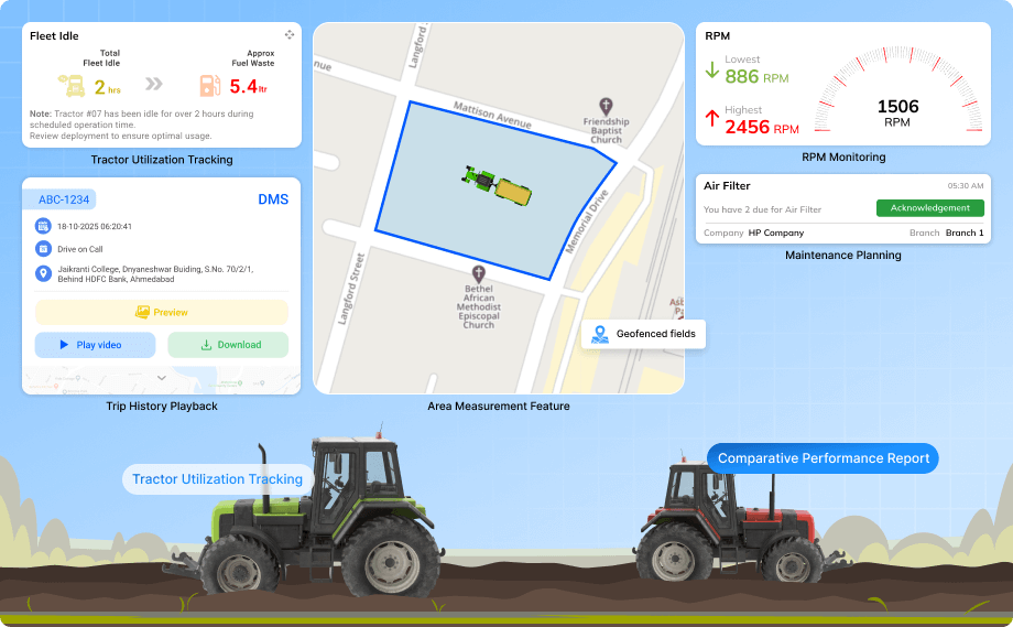 For large-scale farming and agricultural businesses, tractors are valuable assets that run for long hours across wide areas. Yet, many farm managers struggle to track how efficiently they are used. Without visibility into working hours, covered area, or idle time, it’s difficult to measure productivity or optimize operations. Trakzee’s Tractor Utilization solution brings data-driven visibility to field operations – ensuring every tractor delivers maximum output per hour and per acre.