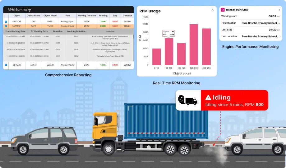 A progressive trucking company is committed to environmental sustainability and fuel efficiency. They face challenges in optimizing their fleet’s fuel consumption, reducing emissions, and ensuring responsible driving practices among their drivers. To achieve their eco-friendly goals, they need a comprehensive solution that provides real-time insights into engine performance and RPM levels.