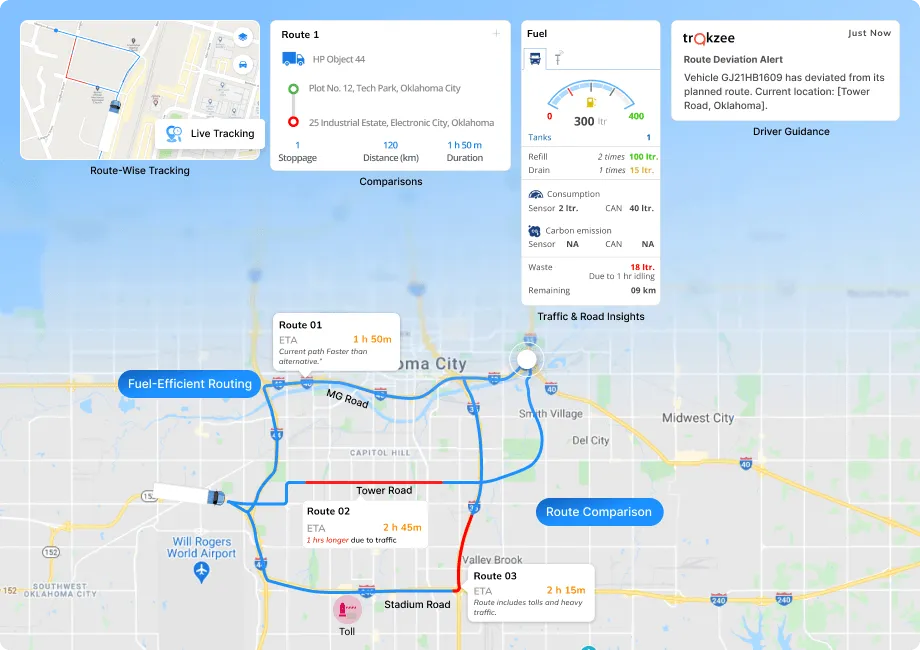 Not all routes consume the same amount of fuel. Traffic, road conditions, and distance can make some routes more costly than others. Tracking fuel efficiency per route helps managers choose smarter paths, save money, and improve fleet performance. Trakzee’s Fuel Efficiency Monitoring makes this possible with accurate, route-based insights.