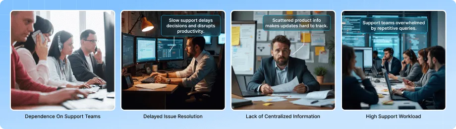 For telematics service providers and their clients, constant support requests for product information, feature guides, or troubleshooting consume valuable time. Managers often wait for email responses or technical assistance, even for basic queries. This slows down operations and reduces overall satisfaction. What clients need is a faster, self-reliant way to access information anytime.