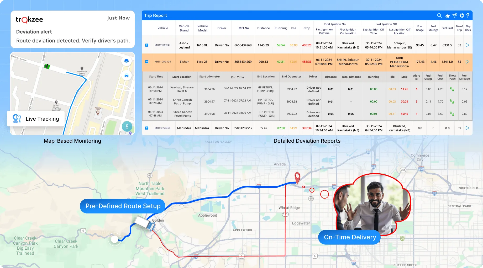 When drivers don’t follow the assigned route, it creates unnecessary risks. The vehicle may waste fuel, delay deliveries, or even face safety concerns. Route deviation detection makes sure every trip stays on track and managers know exactly when and where a driver goes off-route.