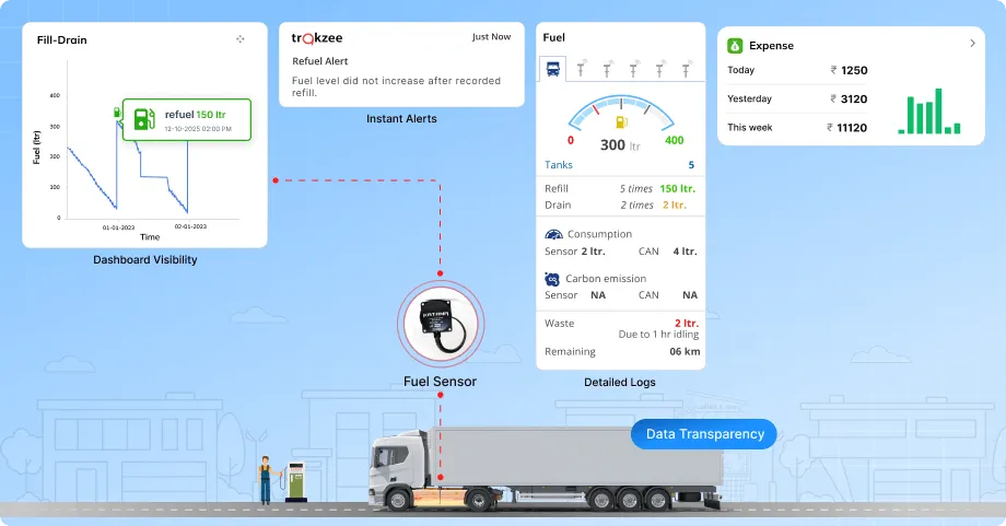Ghost refueling is a common fraud where fuel entries are made in records, but no actual refueling takes place. This creates fake expenses and reduces fleet profitability. Detecting such frauds quickly is essential to protect company resources. Trakzee’s Ghost Refueling Detection uses smart monitoring to verify every refueling event and ensure accuracy.