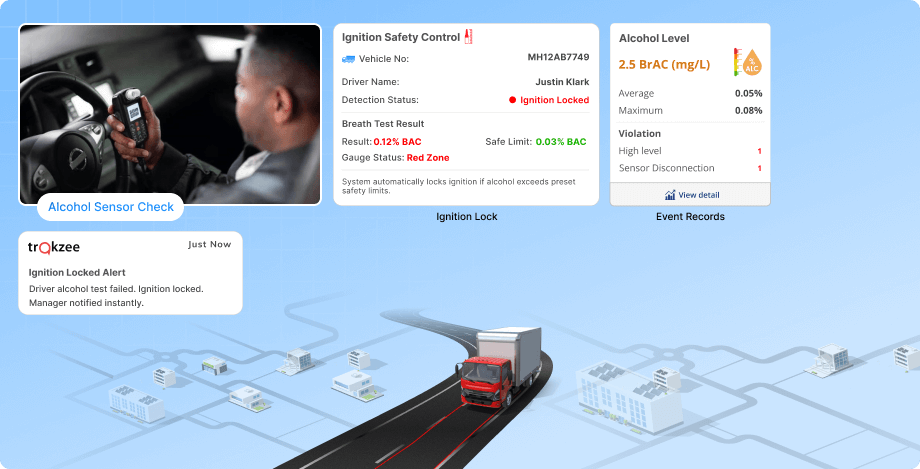 Driving under the influence of alcohol is one of the biggest risks on the road. It not only endangers the driver but also puts passengers, goods, and other road users at risk. Fleets need a reliable way to prevent such incidents before a vehicle even starts. Trakzee’s Alcohol Detection with Ignition Lock makes this possible by checking drivers for alcohol levels and blocking the engine if limits are exceeded.
