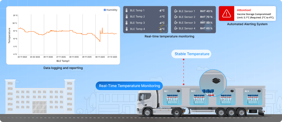 Safe and effective distribution of pharmaceutical products is critical to ensure patient safety and well-being. Temperature is an essential component of this process, as many medications and vaccines require strict temperature controls to maintain their efficacy. In this use case, we will explore how temperature monitoring is used in pharma product distribution, as well as the challenges and solutions associated with this process.