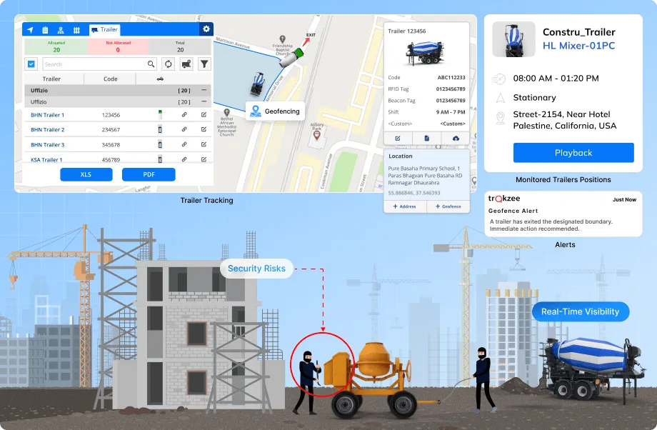 • Enhanced Asset Management: Real-time tracking allows construction companies to locate trailers instantly, reducing the time spent searching for specific equipment. This improves asset management and minimizes downtime.