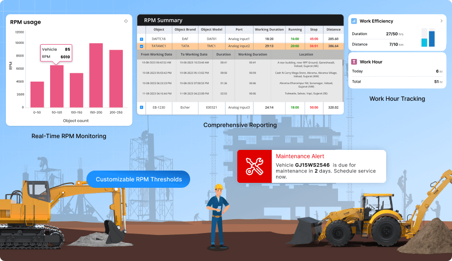 In the construction industry, efficiency, maintenance, and safety are important. Discover how the integration of RPM monitoring and engine work hour tracking is changing fleet management. It is, optimizing efficiency, and ensuring the longevity of heavy machinery assets.