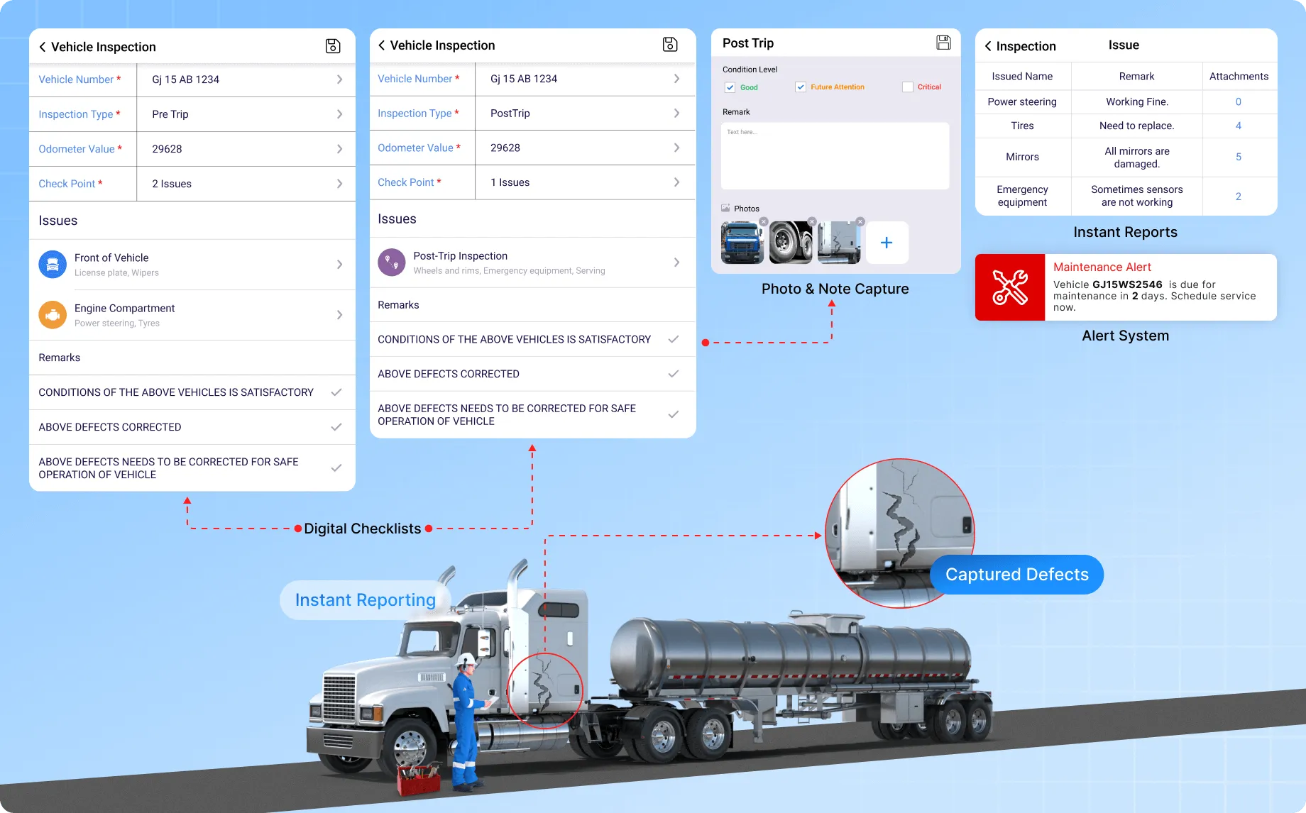 Pre and post trip vehicle inspections are a key part of Uffizio’s Compliance & Maintenance solutions. They ensure that every vehicle is checked before going on the road and after returning, helping fleets stay compliant, safe, and reliable.