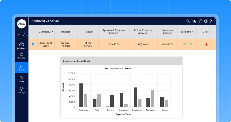 In many operations, the amount spent on each vehicle is recorded but there was no fixed budget limit defined. Even overspending often went unnoticed and managers had to manually compare expenses with budget. There was no way to see the difference between actual expense and approved budget.