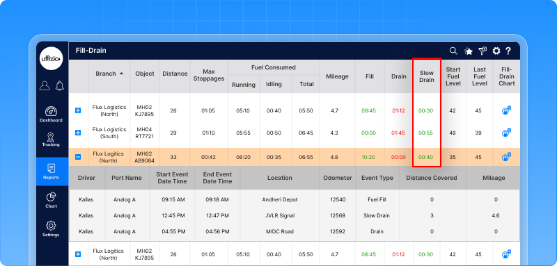 Managing slow fuel drain became easier. Earlier fuel fill drain report generated drain events only when fuel drop crossed the set tolerance limit. With this enhancements now you detect slow fuel drain when the vehicle ignition is off even when the quantity is below tolerance level. Now the system captures a small yet cumulative unauthorised fuel loss.