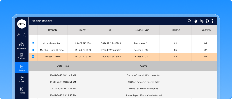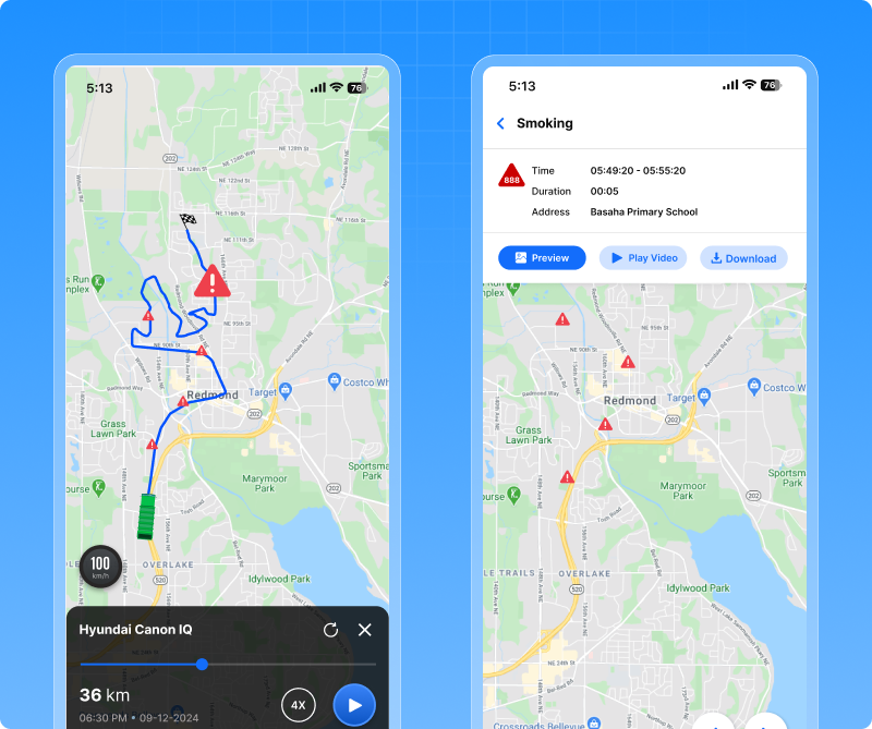 - Helps managers identify camera issues and ensure the video footage is recorded every trip.