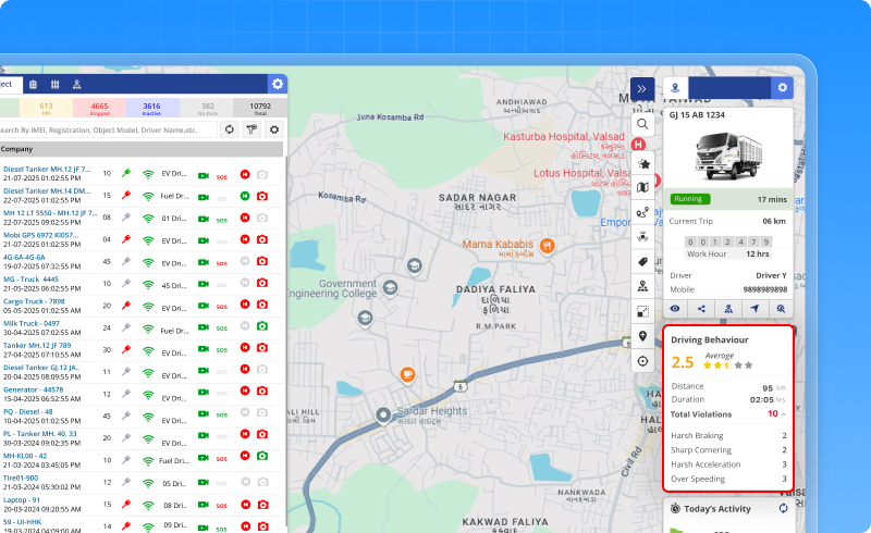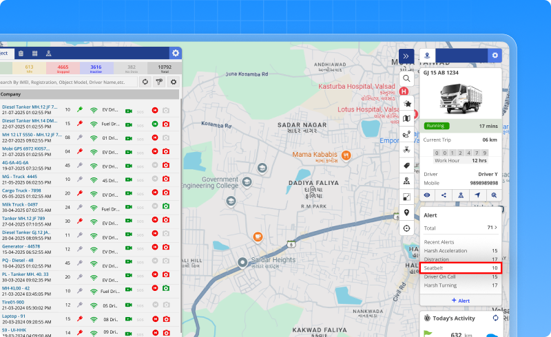 - Shows seatbelt usage report as per trip-wise and driver-wise and helps to understand whether drivers are following seatbelt safety rules.
