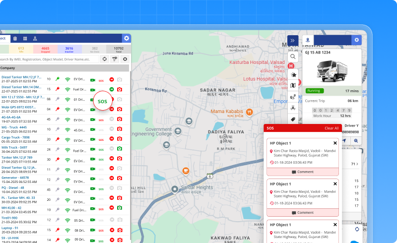 - Shows SOS status on the live tracking screen, making it easy to identify the vehicle that needs immediate attention.