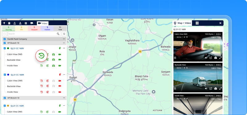 - Show the live status of vehicle cameras across fleets.
