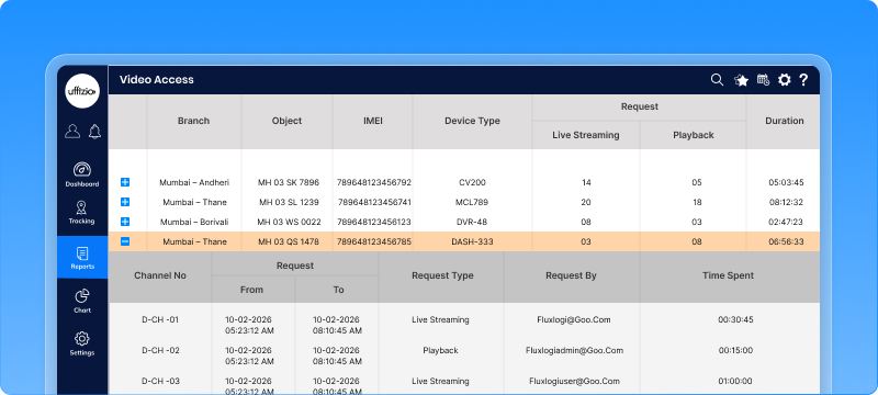 - Users can access the video link for playback directly from the report and can be exported in Excel and pdf format.