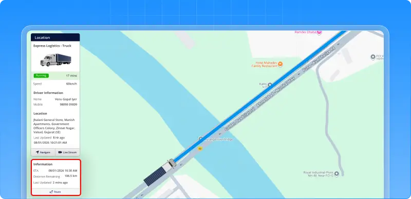 - ETA keeps updating as the vehicle moves