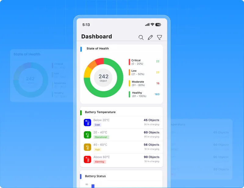 - Battery temperature alerts: Receive instant alerts if the battery temperature crosses safe limits.