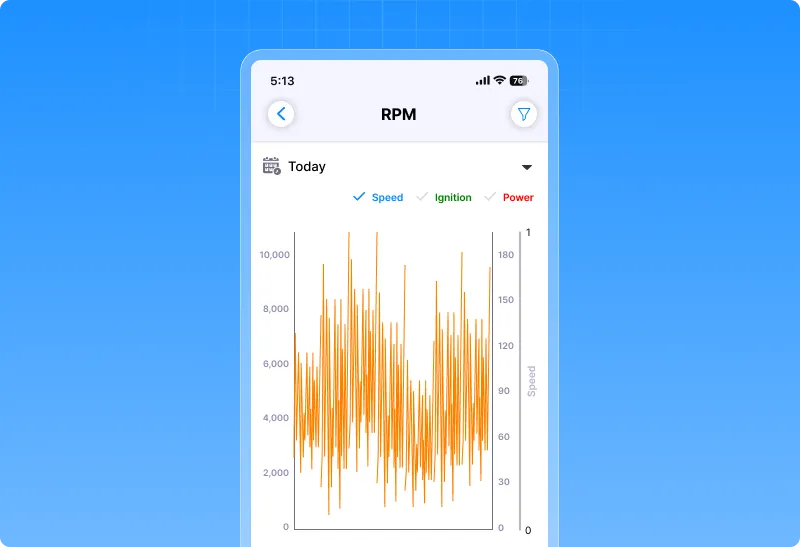 Fleet managers can now see RPM data in an easy-to-read chart format instead of just tables. This new update introduces RPM vs time graphs in both web and mobile apps, helping you visualize engine performance at a glance.