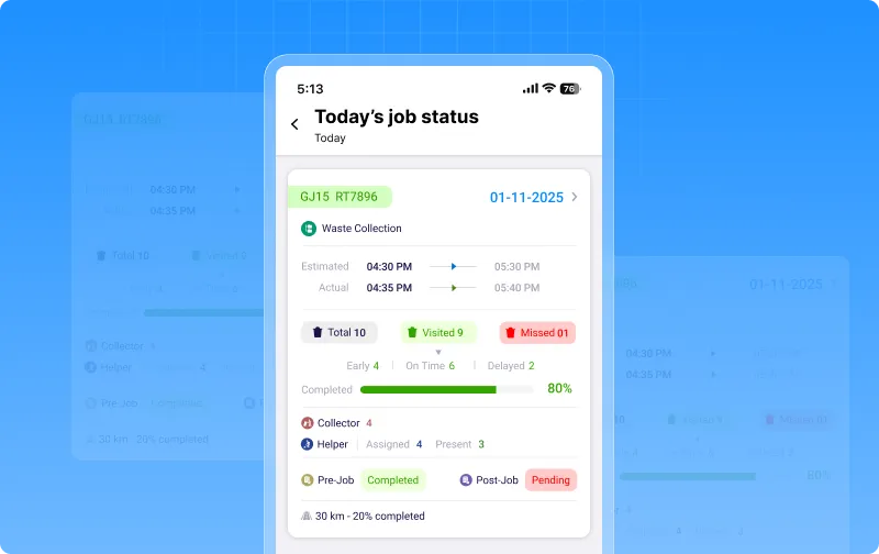 - Pre-job & post-job VCR status: View whether the collector has completed the vehicle inspection before and after a job.