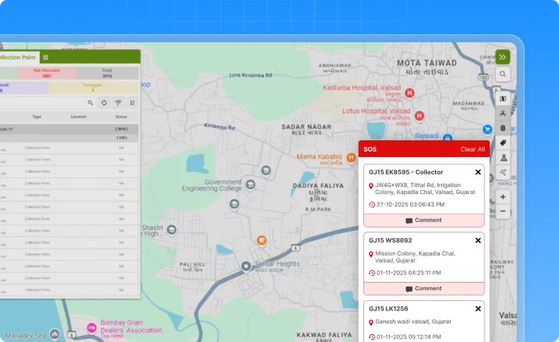 Handling multiple SOS alerts just got simpler. The latest update to the SmartWaste live tracking screen introduces a cleaner and more focused SOS notification panel that helps operators act faster during emergencies.