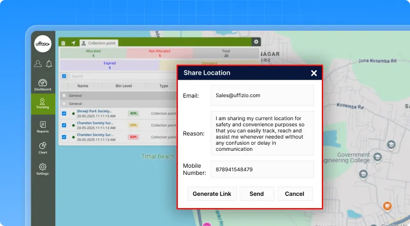 Managing waste operations just got more convenient! With this enhancement, users can now share a bin’s live location directly from the live tracking screen without relying on reports.