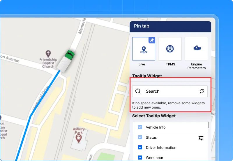 Scrolling through a long list of options can be tiring. To make things easier, we’ve added a search bar in the tooltip widget settings on live tracking. Now you can simply type the name of the widget you want, and the list updates instantly. No need to dig through the entire list.