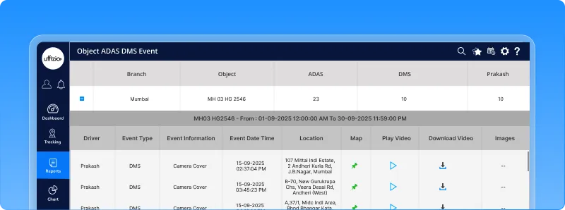 With this enhancement, driver details are now included in both Object and Driver ADAS/DMS reports. The system uses a smart mapping logic — checking iButton, RFID, Beacon, or default driver assignments — to link events to the right driver.